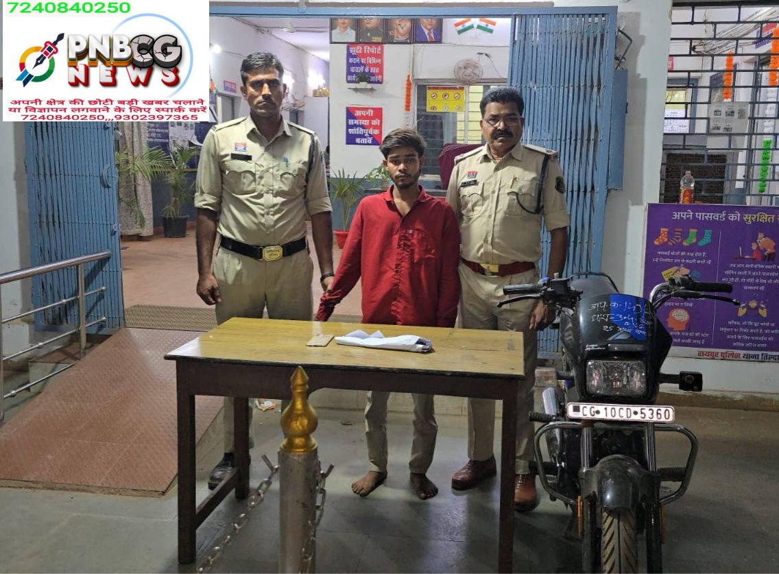तिल्दा-नेवरा थाना पुलिस ने मोबाइल स्नैचिंग की घटना में त्वरित कार्रवाई करते हुए एक आरोपी को गिरफ्तार किया है। आरोपी के कब्जे से चोरी किया गया मोबाइल, मोटरसाइकिल और एक धारदार चाकू बरामद किया गया है। घटना का विवरण: प्रार्थी गोविंद साहू (निवासी खपरीकला) 8 अप्रैल 2026 की रात करीब 9:40 बजे खाना खाने के […]