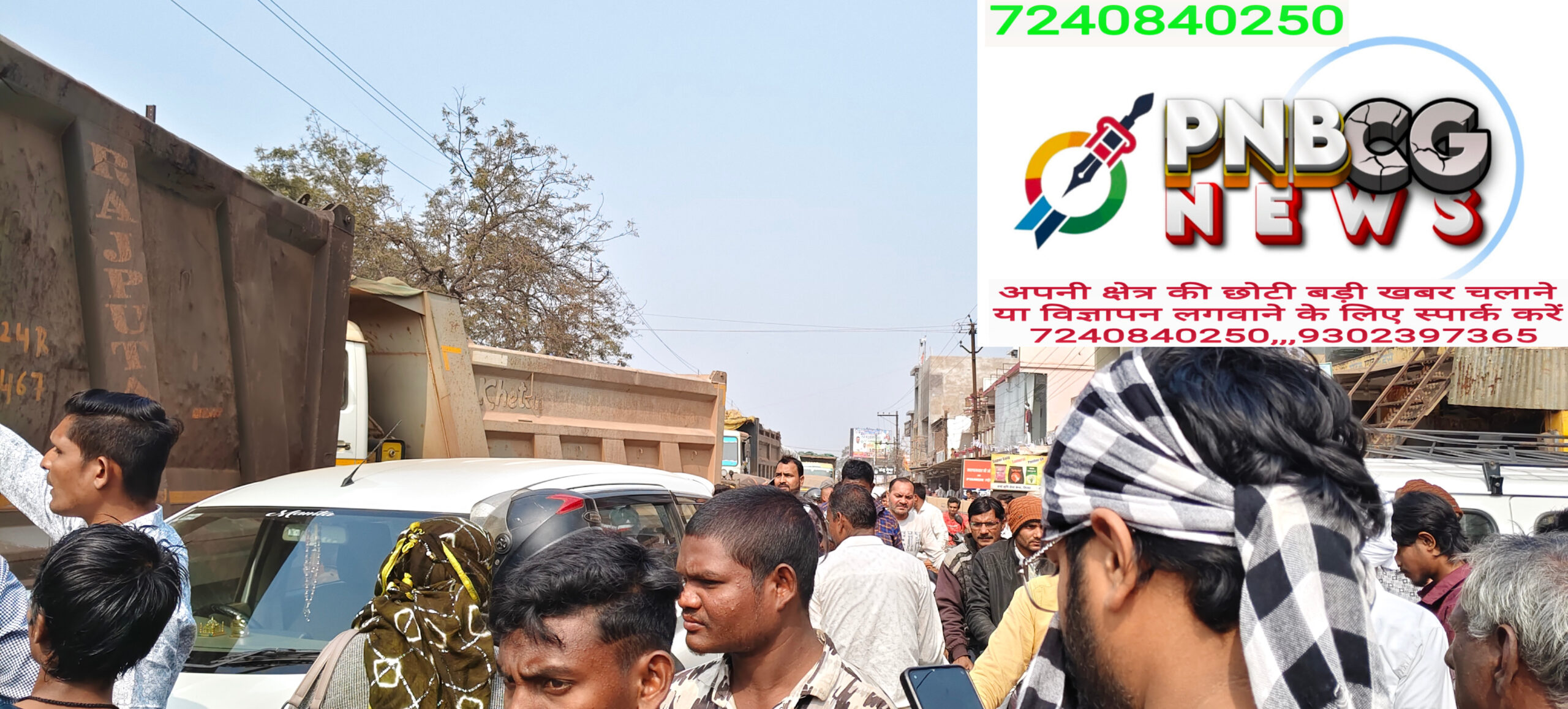 तिल्दा–खरोरा मुख्य मार्ग पर हाईवा–कार की जोरदार टक्कर, लगा लंबा जाम डिवाइडर व बायपास नहीं बनने से फिर हुआ हादसा