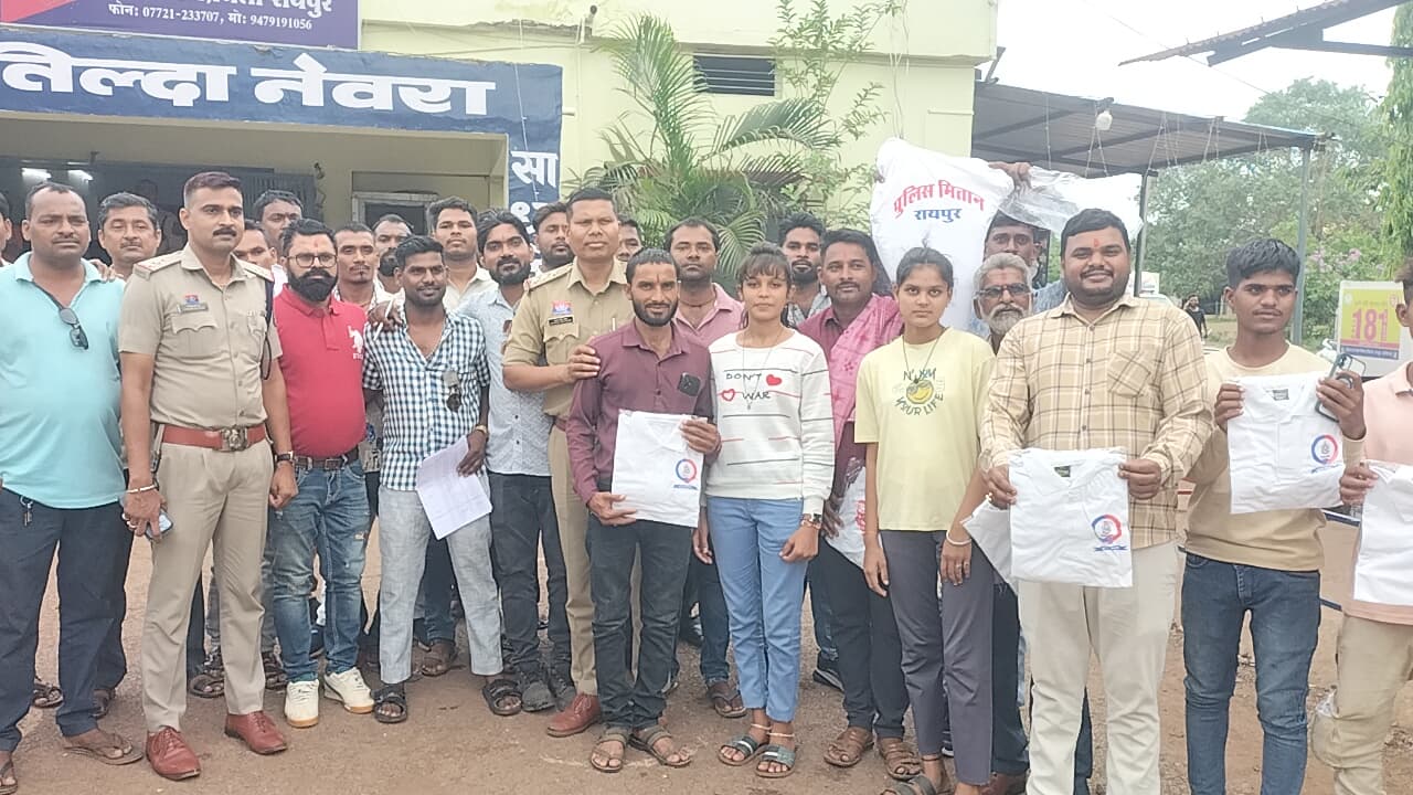 सड़क सुरक्षा मितान कार्यक्रम थाना तिल्दा नेवरा परिसर में सड़क सुरक्षा मित्र थाना तिल्दा नेवरा से जुड़े मित्रो का कार्यक्रम रखा गया एवं एवं पुलिस मितान T शर्ट का वितरण डाक्टर खुमान वर्मा एवं थाना प्रभारी तिल्दा नेवरा द्वारा किया गया