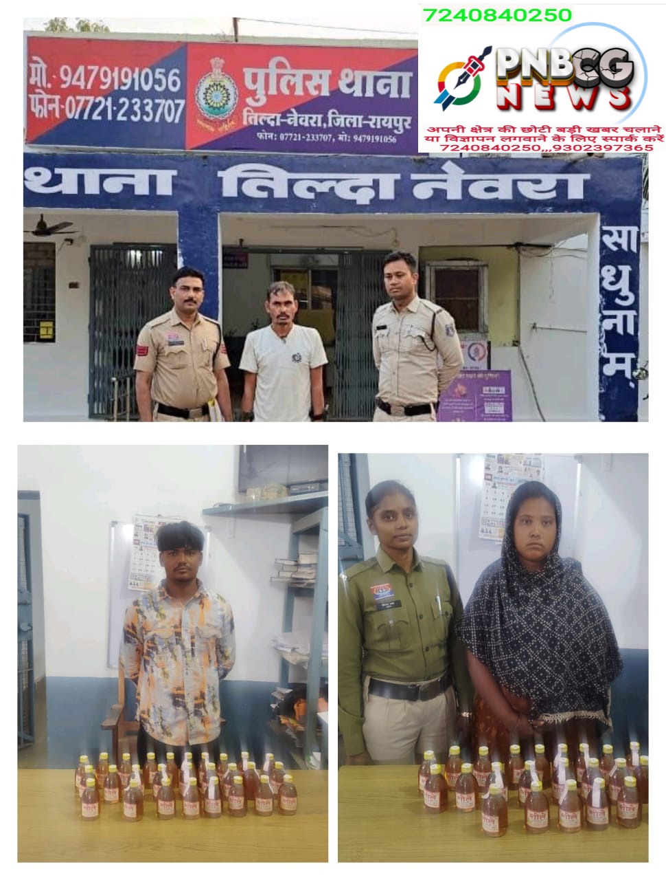 रायपुर पुलिस के ऑपरेशन निश्चय अभियान के तहत थाना तिल्दा नेवरा पुलिस ने अवैध शराब और नशे के खिलाफ प्रभावी कार्रवाई करते हुए तीन आरोपियों को गिरफ्तार किया है। विभिन्न स्थानों पर की गई छापेमारी में पुलिस ने 52 पौवा देशी मसाला शराब और 210 ग्राम गांजा जब्त किया है।