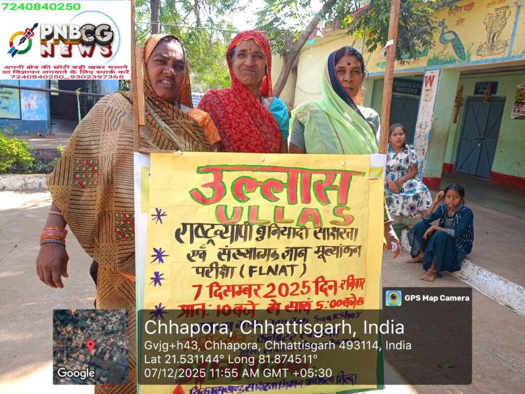 विकासखंड तिल्दा में उल्लास नवभारत साक्षरता कार्यक्रम के तहत 7 दिसंबर 2025, रविवार को FLNAT महा परीक्षा अभियान का सफल आयोजन किया गया। पूरे विकासखंड में कुल 89 परीक्षा केंद्र बनाए गए थे, जहां 930 महिलाओं व 186 पुरुषों सहित कुल 1116 नव-आसाक्षर परीक्षार्थियों ने उत्साहपूर्वक परीक्षा में भाग लिया।