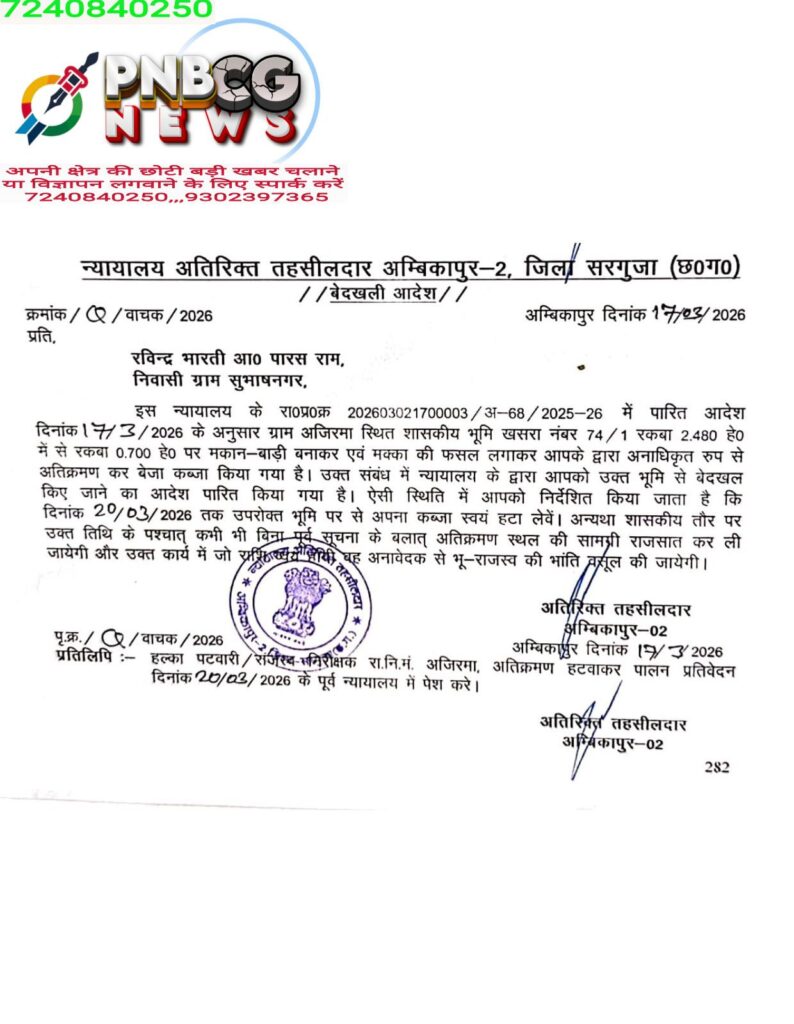 राजस्व निरीक्षक की रिपोर्ट के आधार पर अतिरिक्त तहसीलदार न्यायालय, अम्बिकापुर-02 द्वारा आदेश जारी कर स्पष्ट निर्देश दिए गए हैं कि: