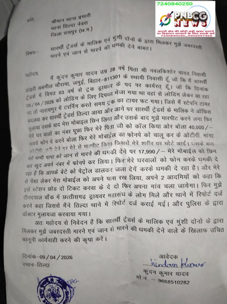 रास्ते में पीड़ित की मुलाकात छत्तीसगढ़ ड्राइवर संघ के सदस्यों से हुई, जिन्होंने उसे तिल्दा थाना में शिकायत दर्ज कराने की सलाह दी।