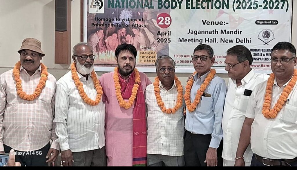 भारतीय लघु एवं मध्यम समाचार पत्र महासंघ की एक आम बैठक पूर्व निर्धारित कार्यक्रम के अनुसार जगन्नाथ मंदिर सभागार, हौज खास में संगठन के मुख्य चुनाव अधिकारी की देखरेख में हुई, जिसमें संगठन के संविधान के अनुसार वर्ष 2025-2027 के लिए चुनाव प्रक्रिया में विभिन्न राज्यों से आए प्रतिनिधियों ने विभिन्न पदों के लिए नामांकन दाखिल किए तथा सर्वसम्मति से डॉ. पवित्र मोहन सामंन्तराय को राष्ट्रीय अध्यक्ष चुना गया तथा उन्हें अपने स्तर पर नामांकन दाखिल करने वाले लोगों को अधिकार देने तथा भविष्य में संगठन का विस्तार करने का अधिकार दिया गया, जिसके अनुपालन में राष्ट्रीय अध्यक्ष ने बी.एस. देशपांडे राष्ट्रीय महासचिव, वीरेंद्र कुमार सैनी राष्ट्रीय कोषाध्यक्ष, सुरेंद्र वर्मा राष्ट्रीय उपाध्यक्ष, शंकर कोडाला राष्ट्रीय उपाध्यक्ष, सीएचएम मलिकार्जुन श्रीमती कैंडी मिश्रा राष्ट्रीय उपाध्यक्ष, श्रीमती सुनीता उपाध्याय , धीरज कुमार, नरेन्द्र बाबू, राधाश्याम पांडा श्रीमती शिवानी जलौटा को उप महासचिव चुना गया, साथ ही अमन नारायण स्वामी, उदय सीमा, एएल वासवगौड़ा को राष्ट्रीय कार्यकारिणी सदस्य चुना गया